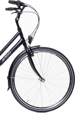 De Amigo Bright is een stijlvolle, moderne stadsfiets voor vrouwen van alle leeftijden. De fiets is voorzien van een handige bagagedrager, drie versnellingen en duurzame Amigo banden. Een praktische fiets die ideaal is om mee naar het werk of naar school te fietsen, of gewoon voor een recreatieve fietsrit. Ben je op zoek naar een betaalbare stadsfiets van goede kwaliteit? Dan is de Amigo Bright precies wat je zoekt!