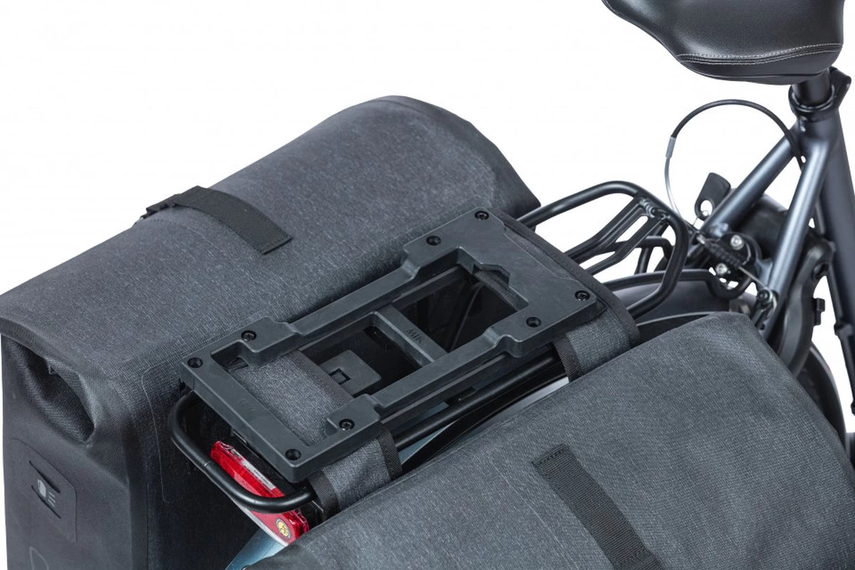 - Je monteert de MIK Double Decker gemakkelijk op de brug van een dubbele MIK fietstas met voorgemonteerde MIK-adapterplaat.