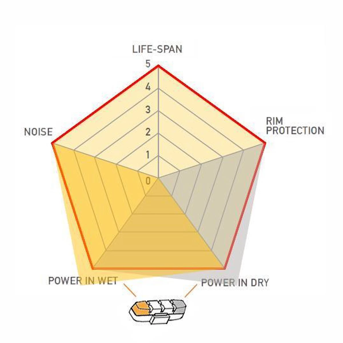 De speciale triple compound is ontwikkeld als ideale all-weather remblok. Door gebruik van verschillende soorten rubber worden trillingen geminimaliseerd waardoor de remblokken geruisloos hun werk doen in alle weersomstandigheden.