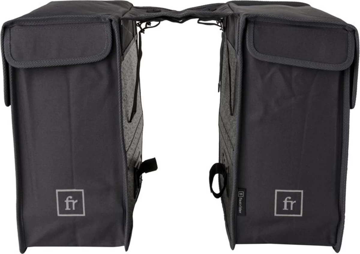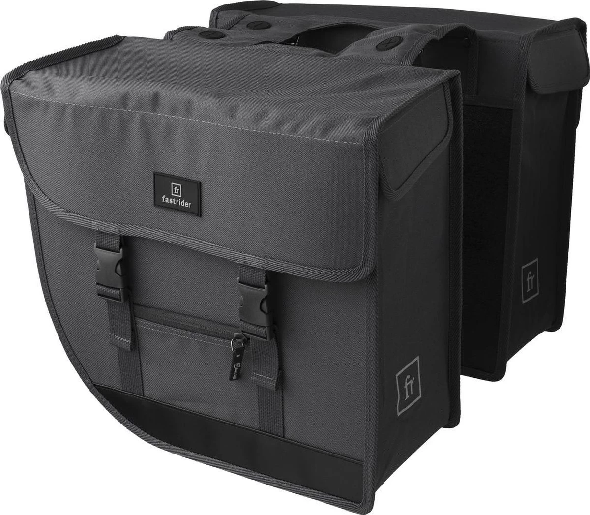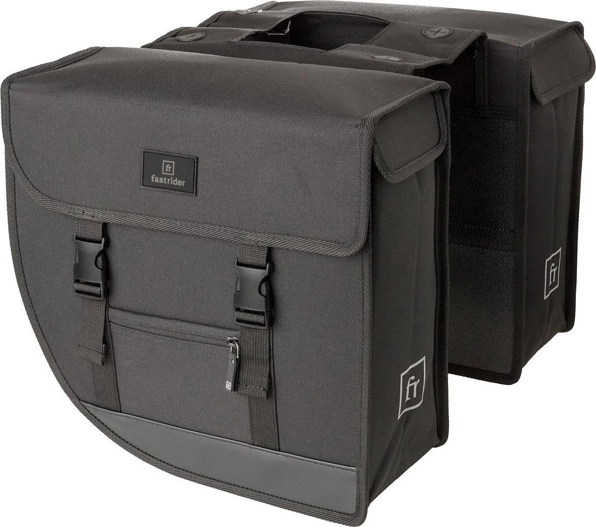 De FastRider Hybride Dubbele Fietstassen zijn speciaal ontwikkeld voor dagelijks gebruik op de fiets. Met zijn inhoud van 26 en 35 liter kan je met gemak al je spullen meenemen. Daarnaast zit deze tas nooit in de weg tijdens het fietsen, de afgeschuinde kanten zorgen ervoor dat hij niet in de weg zit tijdens het trappen. Gemaakt van Gerecycled Polyester is deze tas zeer stevig en hij houdt een kleine regenbui buiten dankzij de waterafstotende coating en de regenoren.