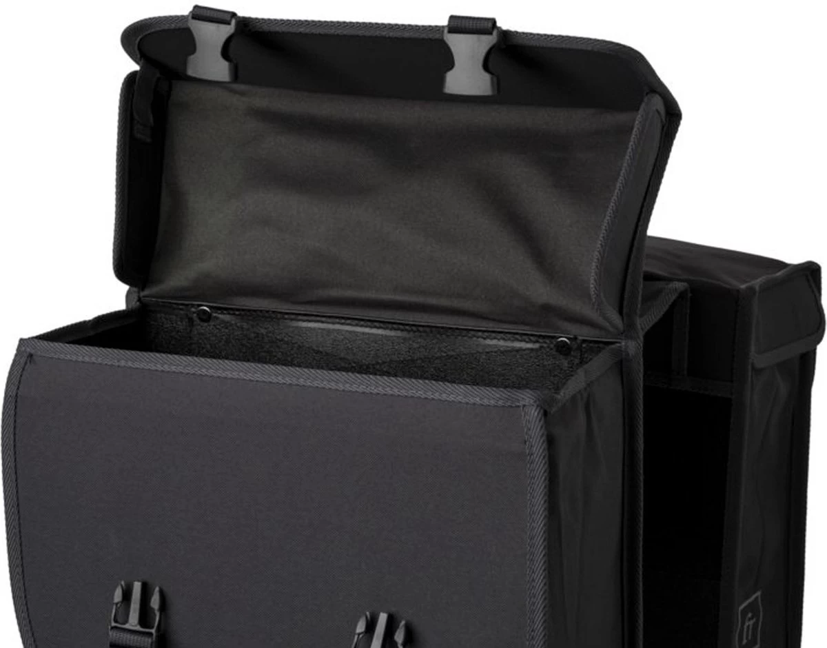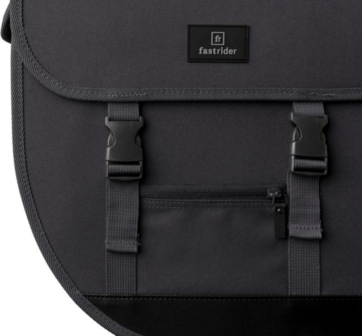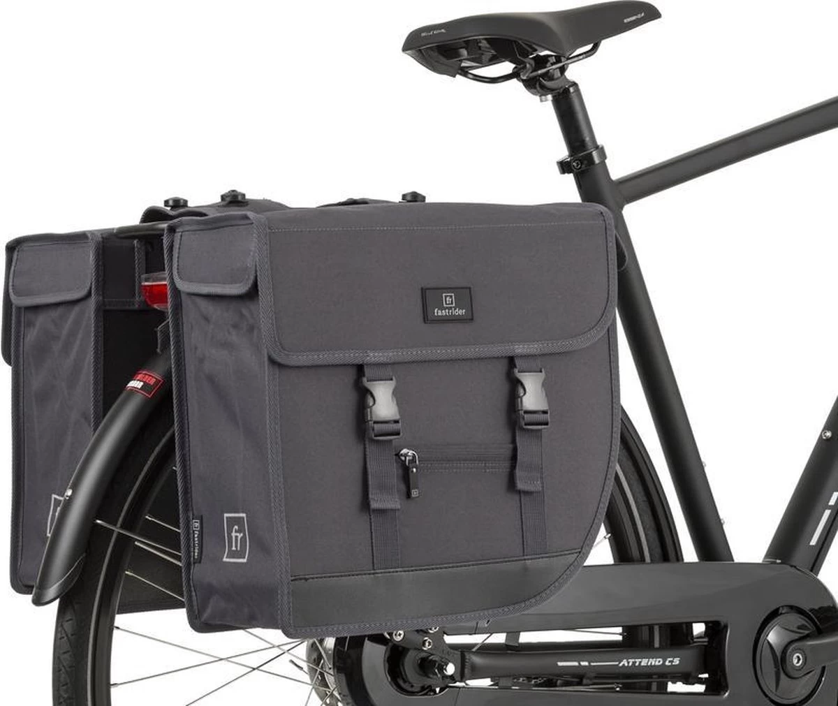 De FastRider Hybride Dubbele Fietstassen zijn speciaal ontwikkeld voor dagelijks gebruik op de fiets. Met zijn inhoud van 26 en 35 liter kan je met gemak al je spullen meenemen. Daarnaast zit deze tas nooit in de weg tijdens het fietsen, de afgeschuinde kanten zorgen ervoor dat hij niet in de weg zit tijdens het trappen. Gemaakt van Gerecycled Polyester is deze tas zeer stevig en hij houdt een kleine regenbui buiten dankzij de waterafstotende coating en de regenoren.