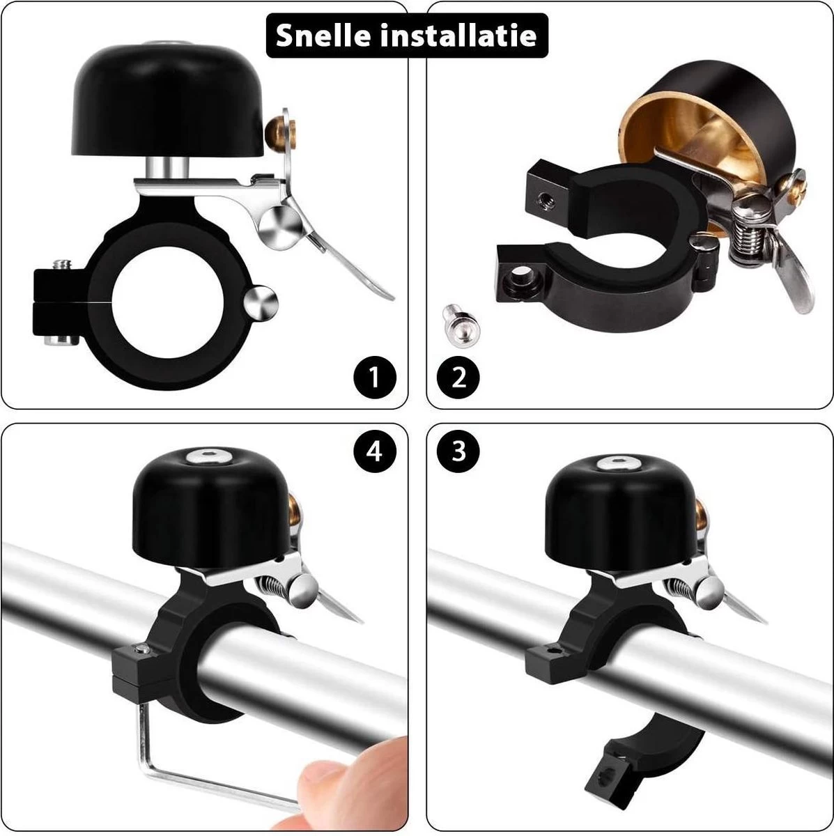 ➥ Snelle installatie – De fietsbel is heel eenvoudig aan het stuur te bevestigen. Hierdoor kun je direct op pad!