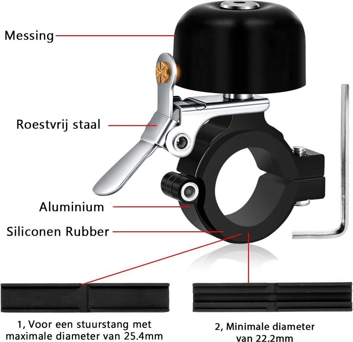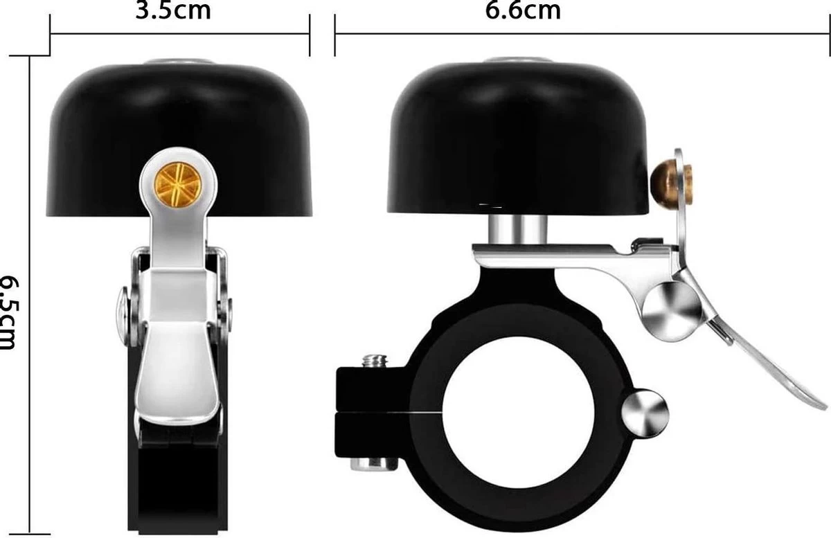 De klassieke fietsbel heeft een heldere, luide toon die goed hoorbaar is. Voetgangers en passerende voertuigen horen je hierdoor duidelijk aankomen, wat het rijden een stuk veiliger maakt. De fietsbel past op vrijwel ieder stuur van 22,2 tot 25,4 mm.
