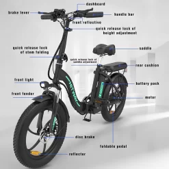 Hitway BK6 Elektrische Fiets | Opvouwbare E-bike | 20 Inch Fat Tire | 350W Motor | 10Ah | Zwart/Groen
