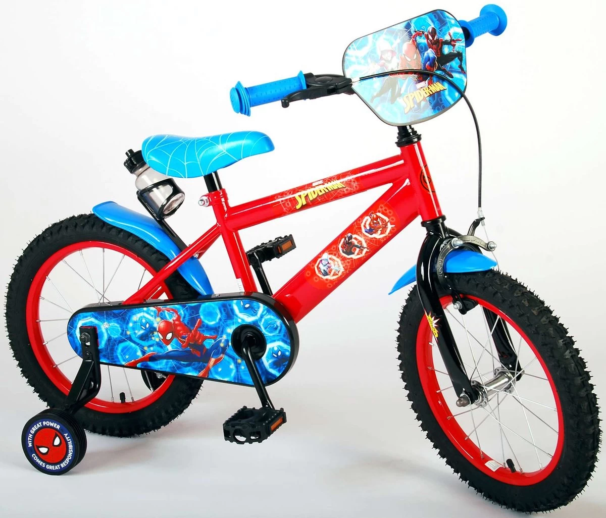 Spider-Man is al decennialang een van de grootste superhelden; elke jongen kent hem wel uit zijn stripverhalen of films. Deze Spider-Man fiets is een topper, met schitterende stickers. Met een supermooi, stoer en modern frame en een bidonhouder. Ook heeft deze fiets makkelijk te (de)monteren zijwieltjes om snel te leren fietsen.