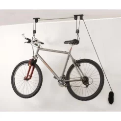 Je fiets aan het plafond ophangen? Dat kan met deze stevige fietslift inclusief bevestigingsmateriaal. De fietslift heeft een draagvermogen van maximaal 20 kg en is geschikt voor vrijwel alle soorten fietsen. De ophanghaken zijn voorzien van een speciale coating zodat ze jouw fiets niet kunnen beschadigen. Met behulp van de katrollen brengt u de fiets moeiteloos op de juiste hoogte Daarnaast beschikt de katrol over een automatisch remsysteem zodat de fiets niet te snel kan zakken. Dankzij het meegelverde bevestingsmateriaal kunt u de fietslift eenvoudig monteren.
