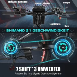 Myatu E-Bike 26-inch E-bike Voor Vrouwen En Mannen, Mountainbike Elektrische Fiets Met 36V 10.4AH Accu En Shimano 21 Versnellingen, 21 Versnellingen, Derailleur, 250 W-Zwart En Blauw