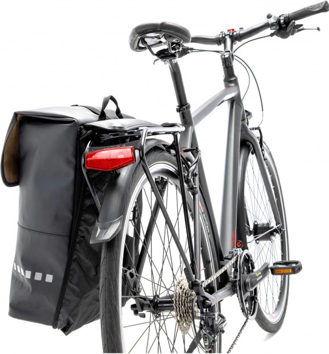 De tas is afgewerkt met reflectie rondom voor extra veiligheid in het donker. Deze is vanaf 3 zijden zichtbaar.