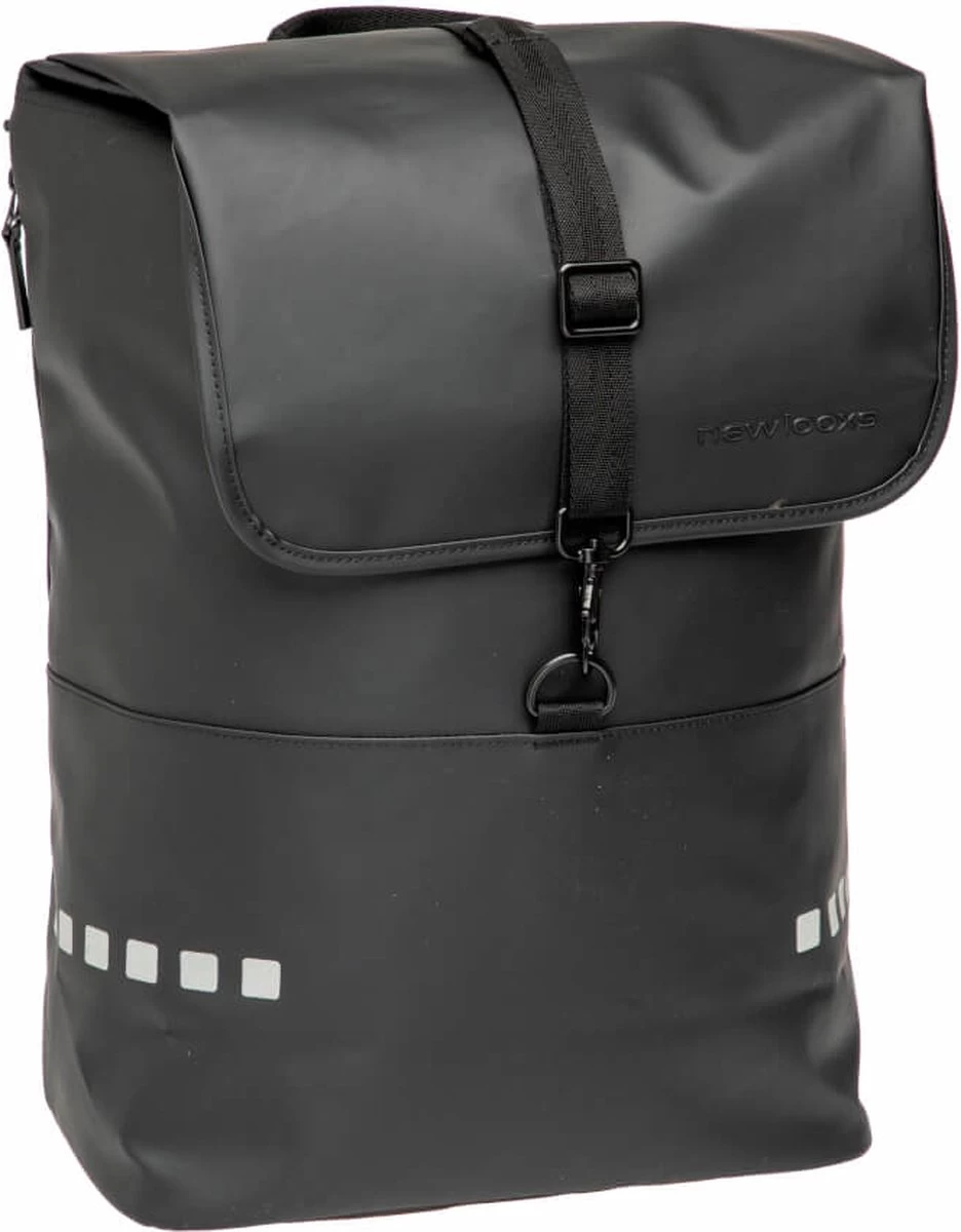 De fietstas wordt aan de bagagedrager bevestigd met New Looxs kunststof haken. Dat maakt deze tas geschikt voor vrijwel alle fietsen, ook elektrische. Met een klittenband riempje zet je de fietstas extra vast aan de zijkant van de bagagedrager. De haken zijn afdekbaar. Hierdoor heb je geen last meer van de haken en ziet de tas er uit als een gewone rugzak!