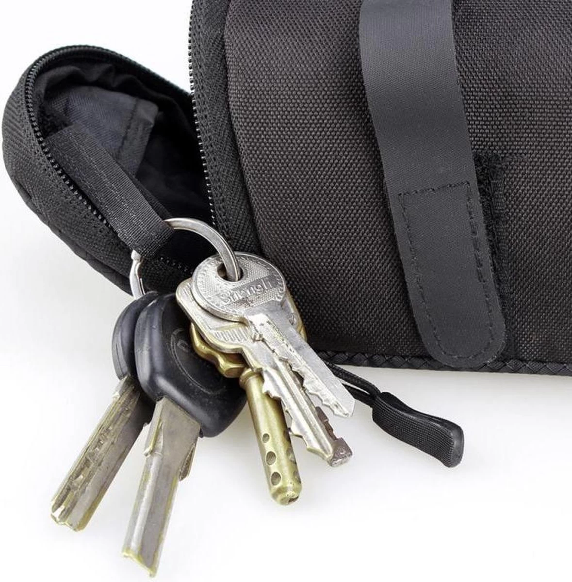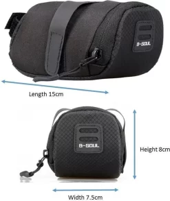 Met deze zadeltas hoeft u al deze noodzakelijke dingen niet meer in uw zakken op te bergen wat het fietsen veel aangenamer maakt. De afmeting van de tas is: 16cm x 8cm x 7cm waardoor deze perfect onder elk zadel past.