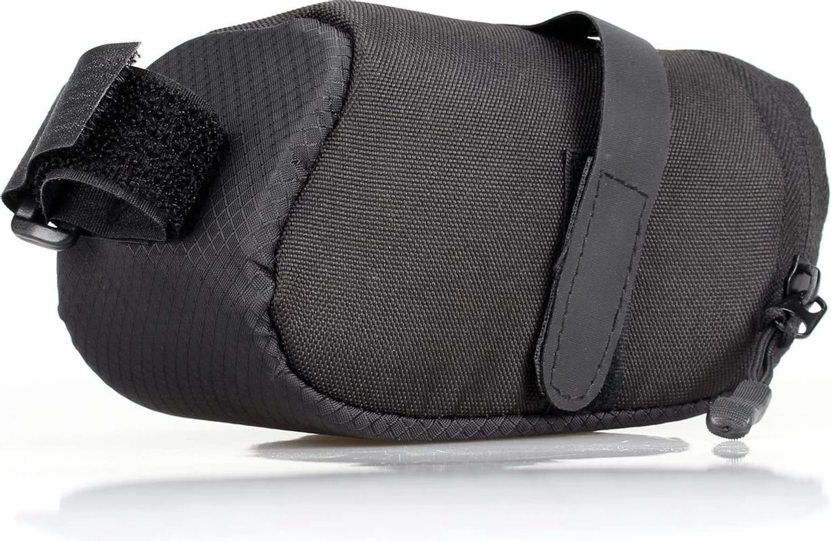 De zadeltas is makkelijk te bevestigen aan elk zadel met een verstelbare riem. De binnen voering van de zadeltas is gemaakt van een schuimrubber waardoor uw spullen veilig zijn opgeborgen onder elke omstandigheid. De buitenkant is gemaakt van een waterafstotend polyester en de rits is speciaal ontworpen om zo makkelijk mogelijk je spullen op te bergen en weer te pakken.