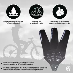 Mountainbikers en wielrenners kennen het probleem. Je stapt op de fiets, de weg is nat of vies of je krijgt onderweg een bui. Je onderrug wordt nat en vies. Ass Saver heeft de perfecte oplossing: het betaalbare “plug and play” achterspatbord voor jouw mountainbike of racefiets. Past op ieder zadel met dubbele rail. Dit spatbord is verkrijgbaar in diverse kleuren.