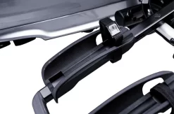 – Klapmechanisme met handgreep voor comfortable toegang tot de kofferruimte, zelfs met fietsen op deze drager