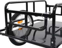 Deze fietskar is zeer stevig en duurzaam dankzij de robuuste stalen frameconstructie. De inklapbare trekstang en inklapbare zijkanten zorgen ervoor dat de kar zeer weinig ruimte in beslag neemt bij opslag en transport. Deze fietstrailer is eenvoudig te monteren.