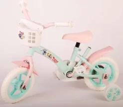 Het leren fietsen kost tijd, moed en doorzettingsvermogen! Maar met wat hulp uit de Tovertuin en een veilig doortrapsysteem vordert dat moeiteloos. Deze mintblauwe met lichtroze 10 inch kinderfiets (met een framemaat van 20 centimeter) is uitermate geschikt voor de eerste ervaringen op de fiets.
